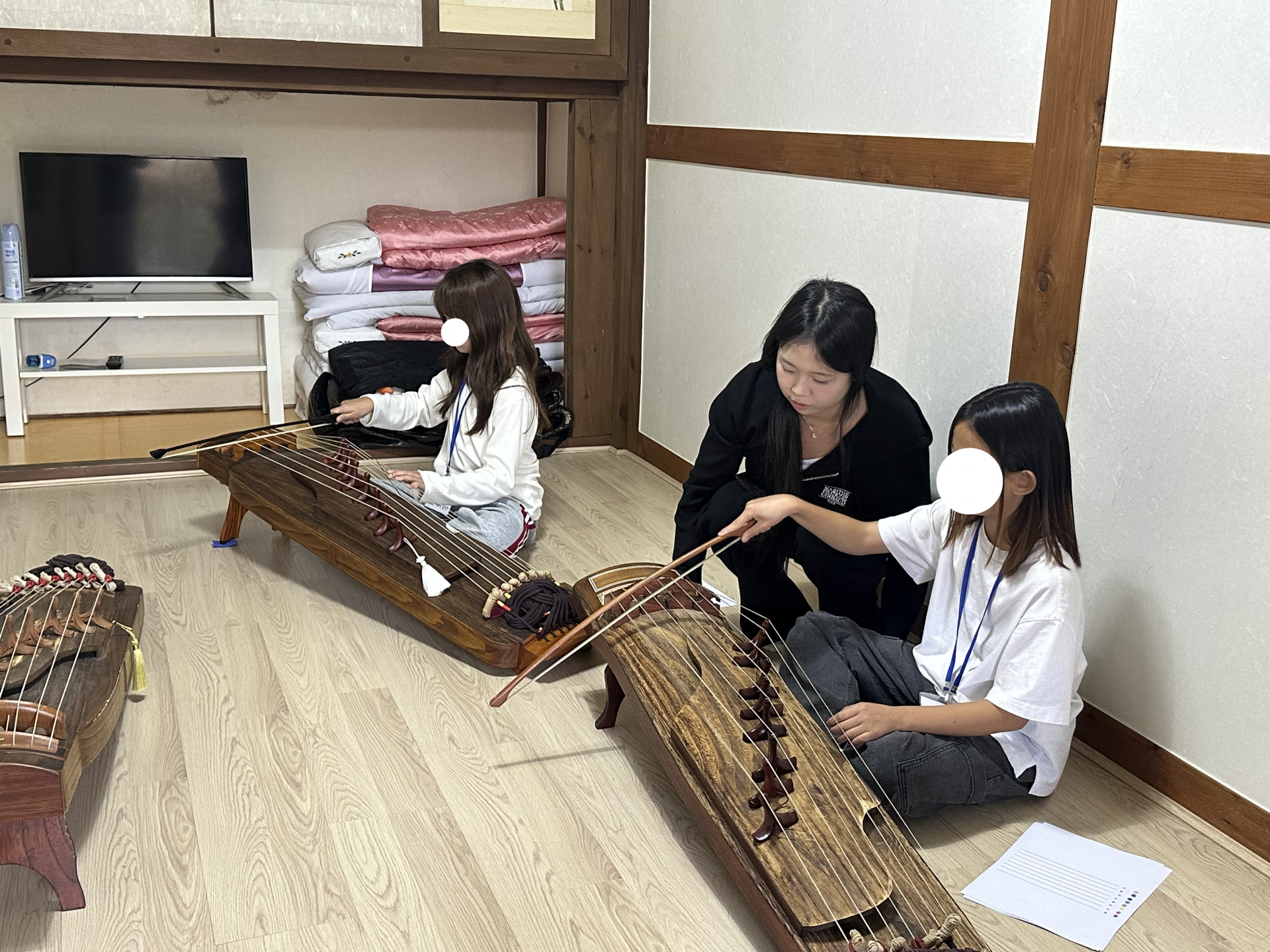 둘째 날에는 전날 배운 곡을 바탕으로 작은 발표회가 열렸습니다. 가야금, 해금, 타악기가 어우러진 ‘아리랑’ 합주 무대는 정말 인상적이었어요.