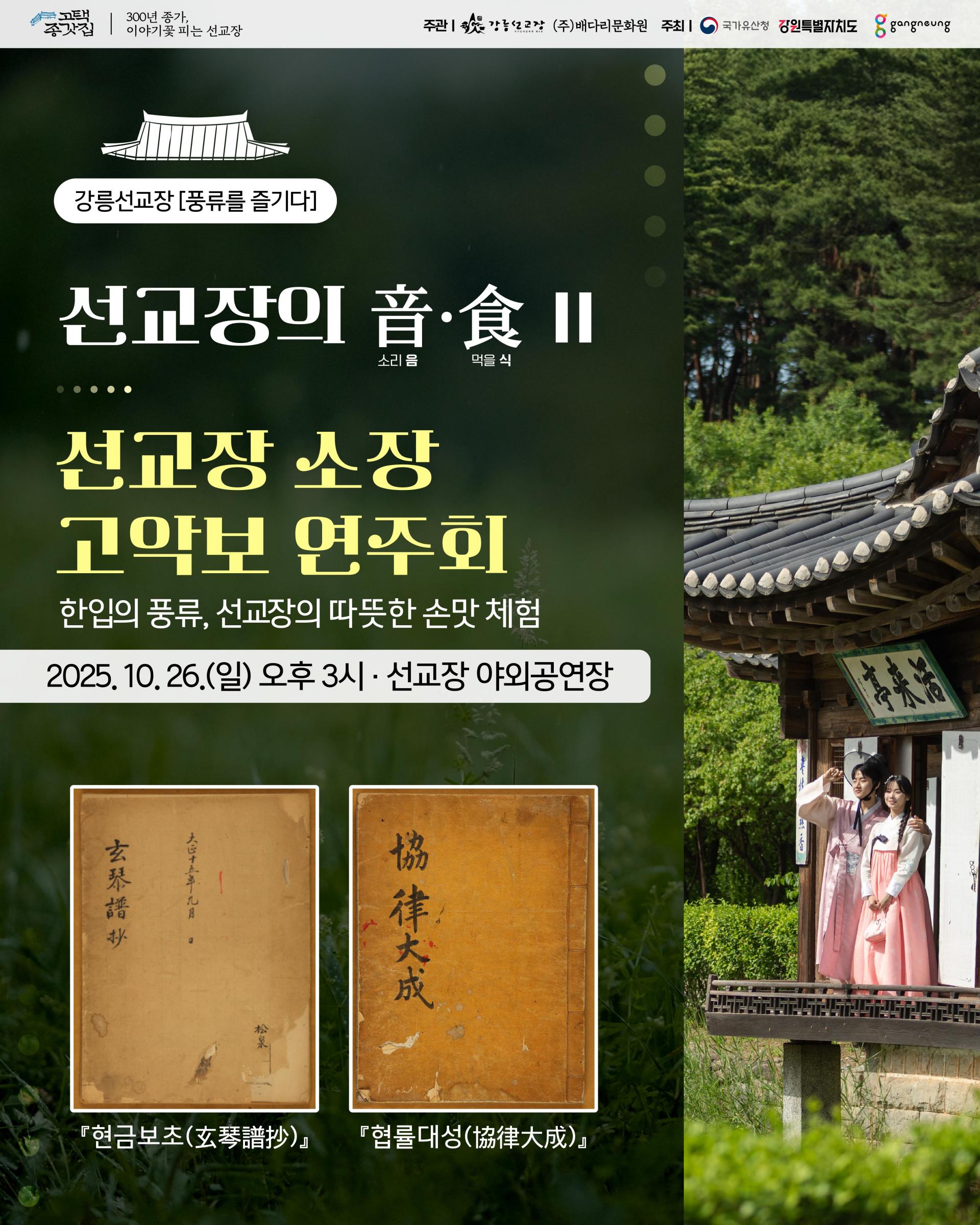 선교장의 音·食 Ⅱ 선교장 소장 고악보 연주회 ⏱2025. 10. 26.(일) 오후 3시