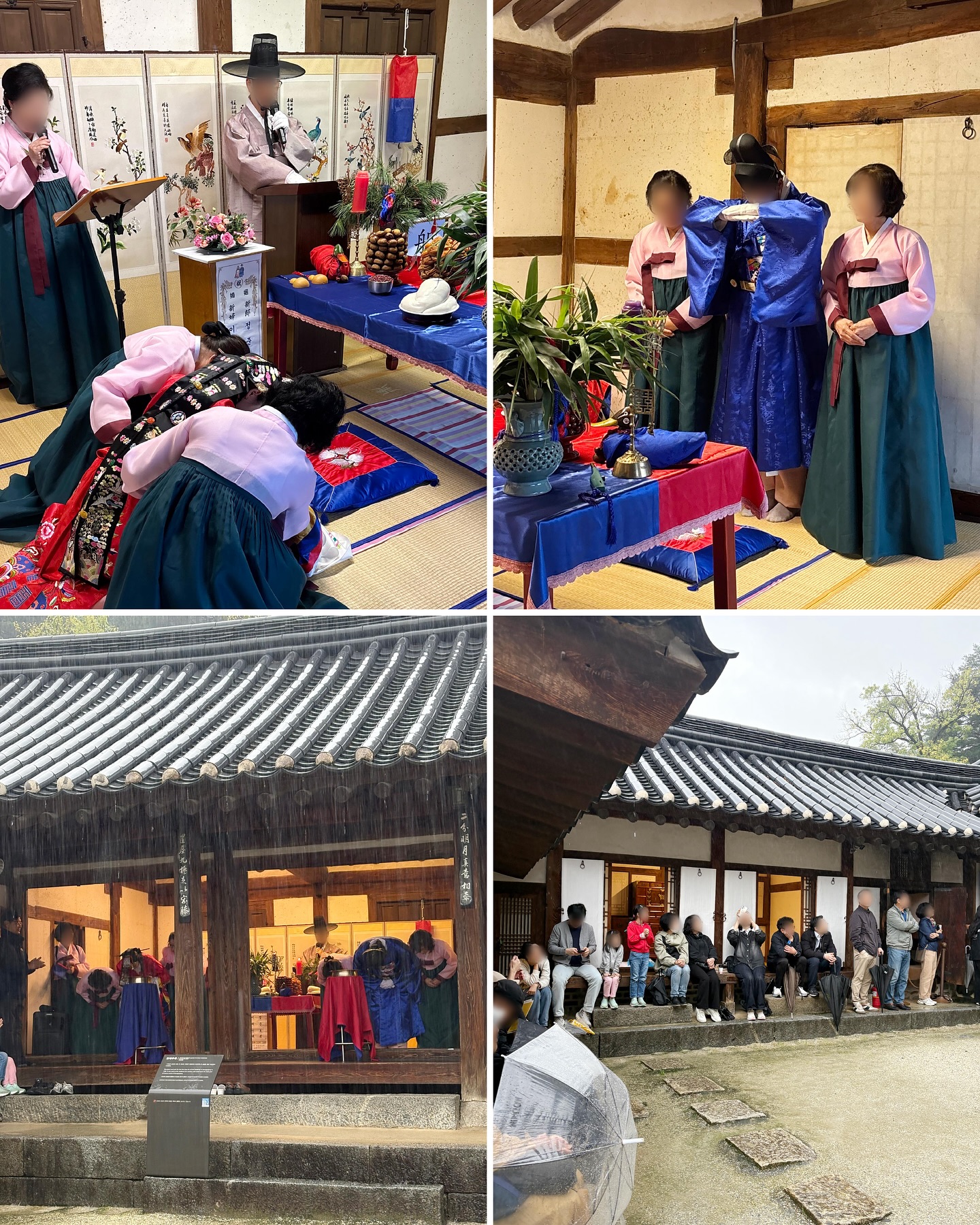 비를 머금은 하늘 아래, 전통혼례 재현행사가 고즈넉히 펼쳐졌습니다.