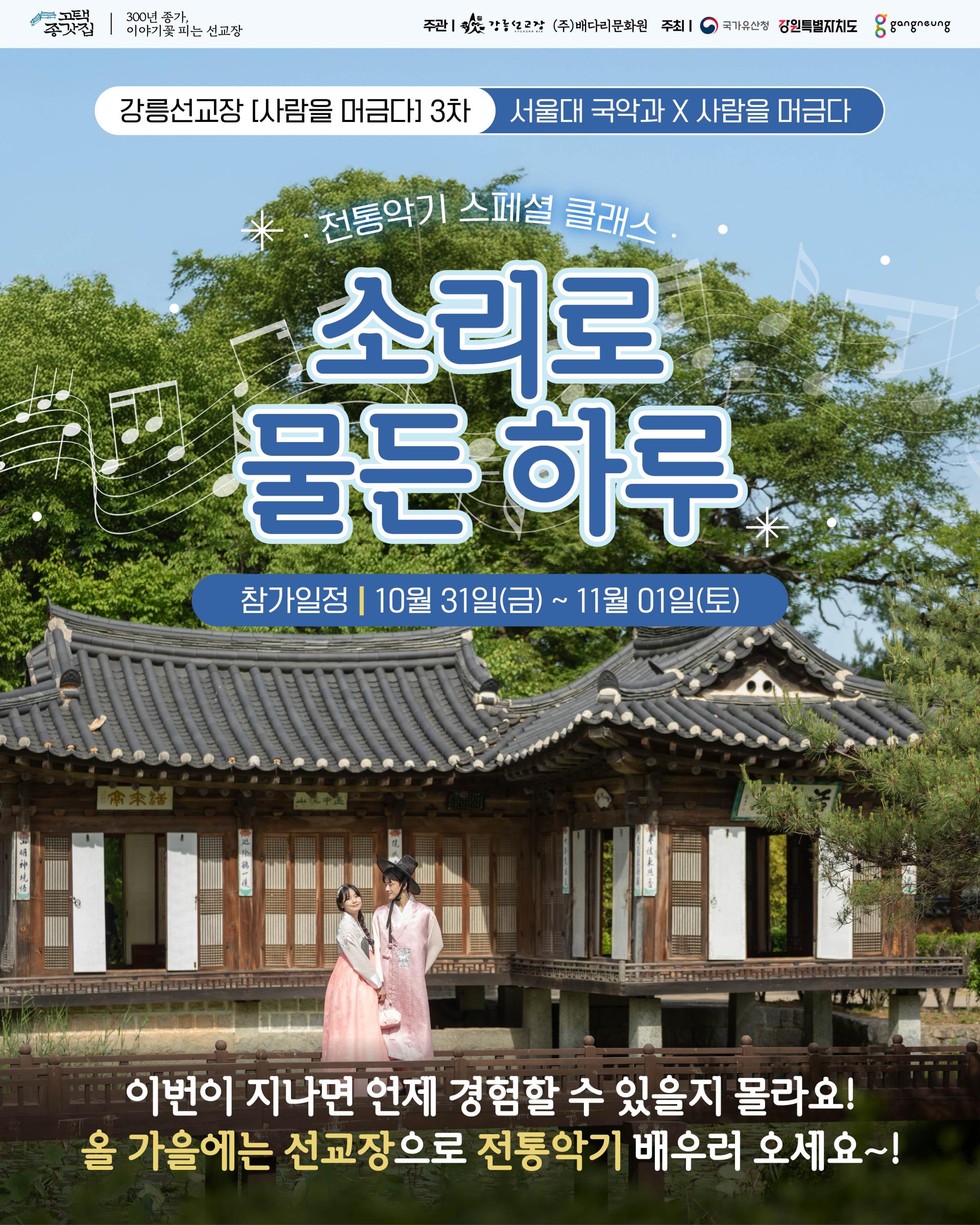 ๊ฐ•๋ฆ‰์„ ๊ต์žฅ์—์„œ ์„œ์šธ๋Œ€ ๊ตญ์•…๊ณผ์™€ ํ•จ๊ป˜ํ•˜๋Š” ์ „ํ†ต์•…๊ธฐ ์ŠคํŽ˜์…œ ํด๋ž˜์Šค๐Ÿ‘